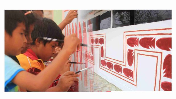 Uno 120 escolares del nivel inicial y primario se encargaron de pintar estos íconos con color rojo y marrón, mientras que en la institución educativa 81766, unos 95 escolares de primaria hicieron lo mismo en un mural de las mismas proporciones.