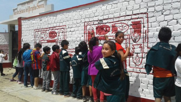 El trabajo consistió en el pintado de un mural con dibujos de corredor de peces, la plaza ceremonial, entre otros relieves que aparecen en el conjunto amurallado Nik An, uno de los 10 que forman parte de Chan Chan.