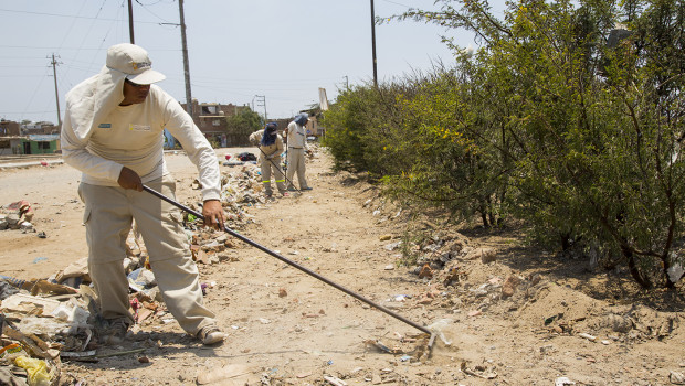 En esta oportunidad una cuadrilla de 17 trabajadores auxiliares y 1 ingeniero forestal realiza labores de poda, riego, fertilización y limpieza de residuos orgánicos acumulados en la zona de Pampas de Santa María, sector de Chan Chan que colinda con el distrito de La Esperanza.